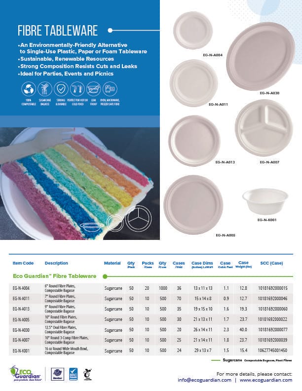 • Responsibly replaces polystyrene, plastic, and tree-based paper tableware