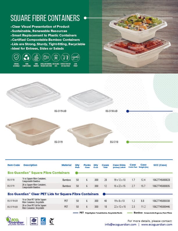 28 oz square fibre container clear PET lid. Ensures a secure fit, and provides excellent stack-ability.