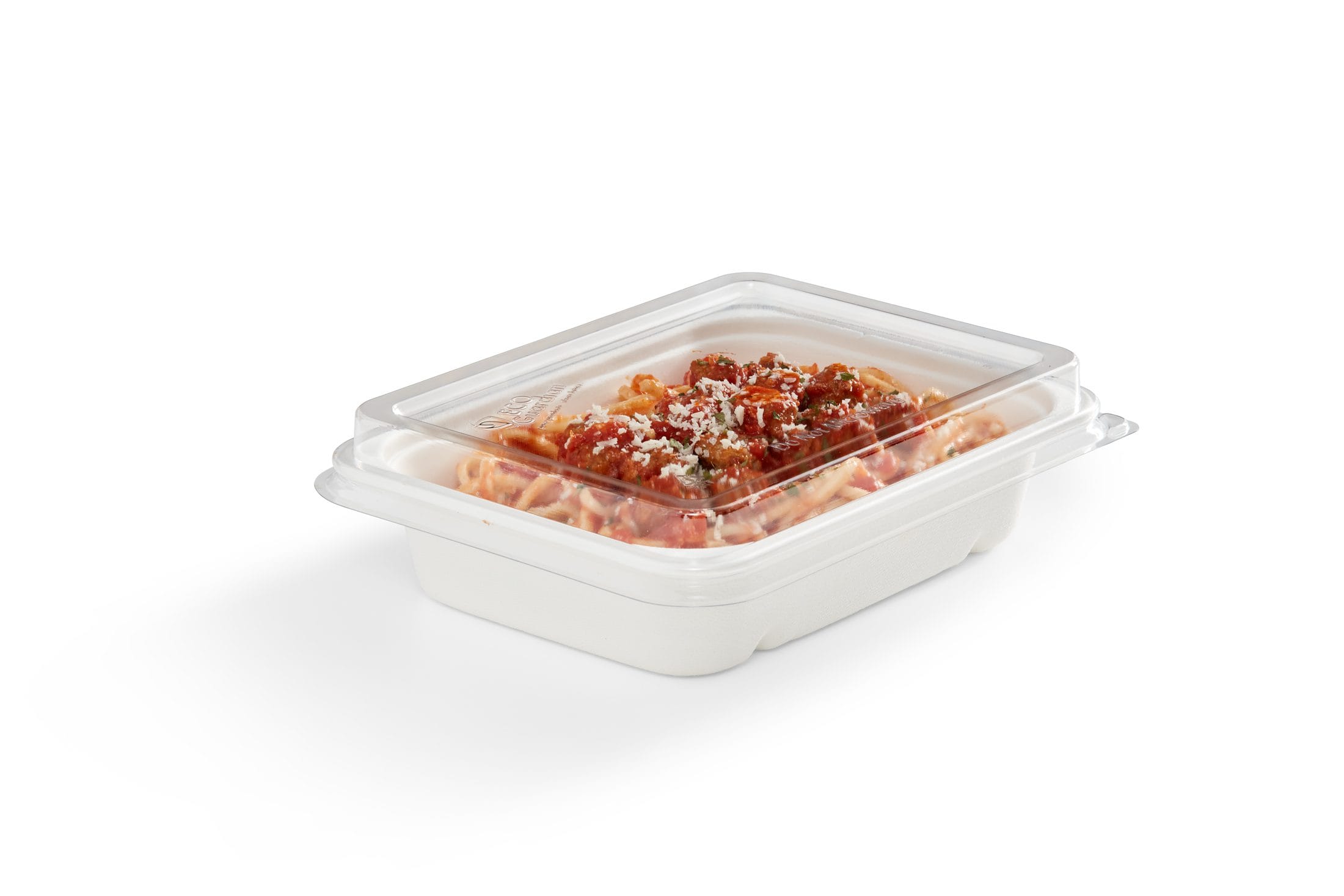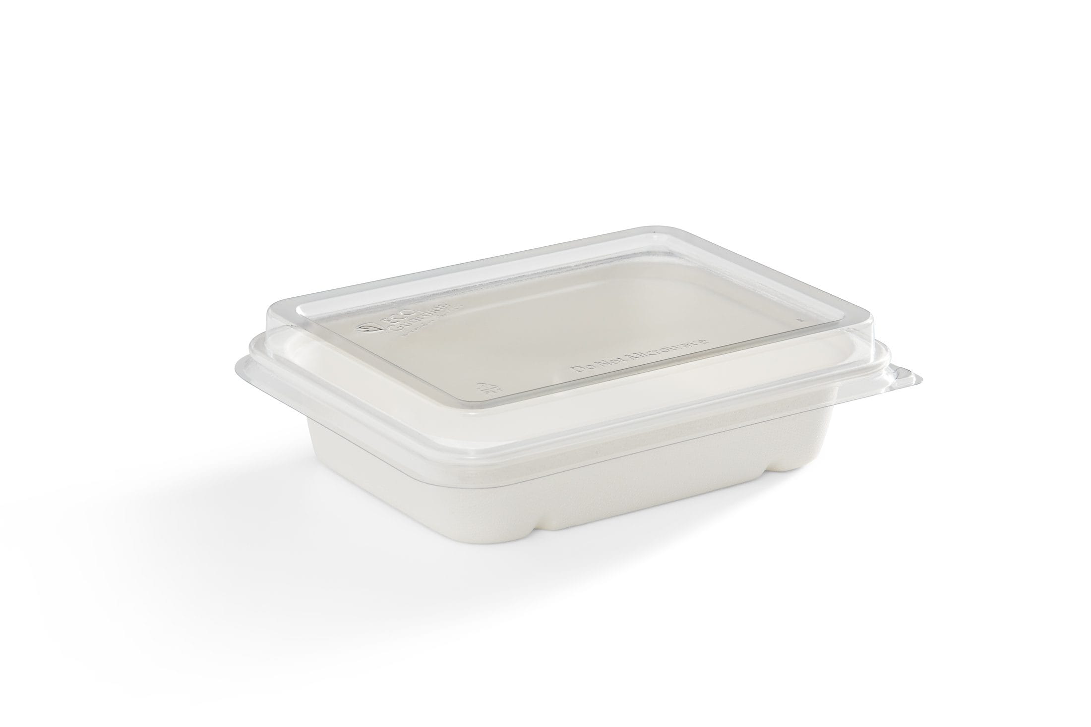 32 oz Rectangle Fibre Container made of sugarcane bagasse. Perfectly sized to serve any meal – breakfast, lunch, dinner or snack or for a wide variety of food processing applications. Clear tight-fitting PET lid is also available.