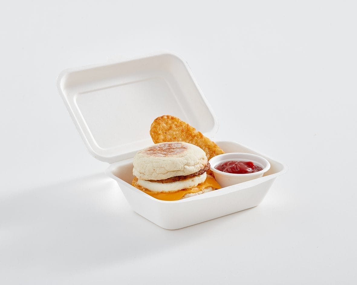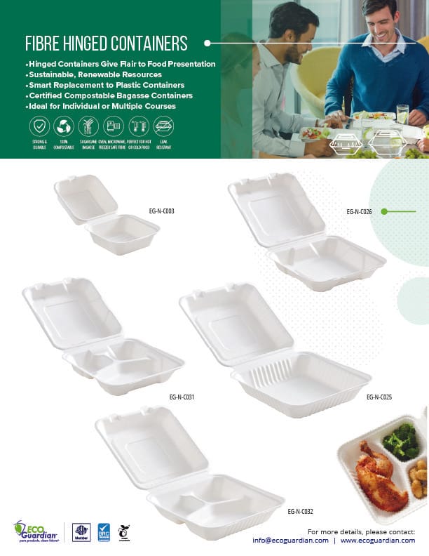 • Responsibly replaces polystyrene, plastic, and tree-based paper take-out and delivery food containers