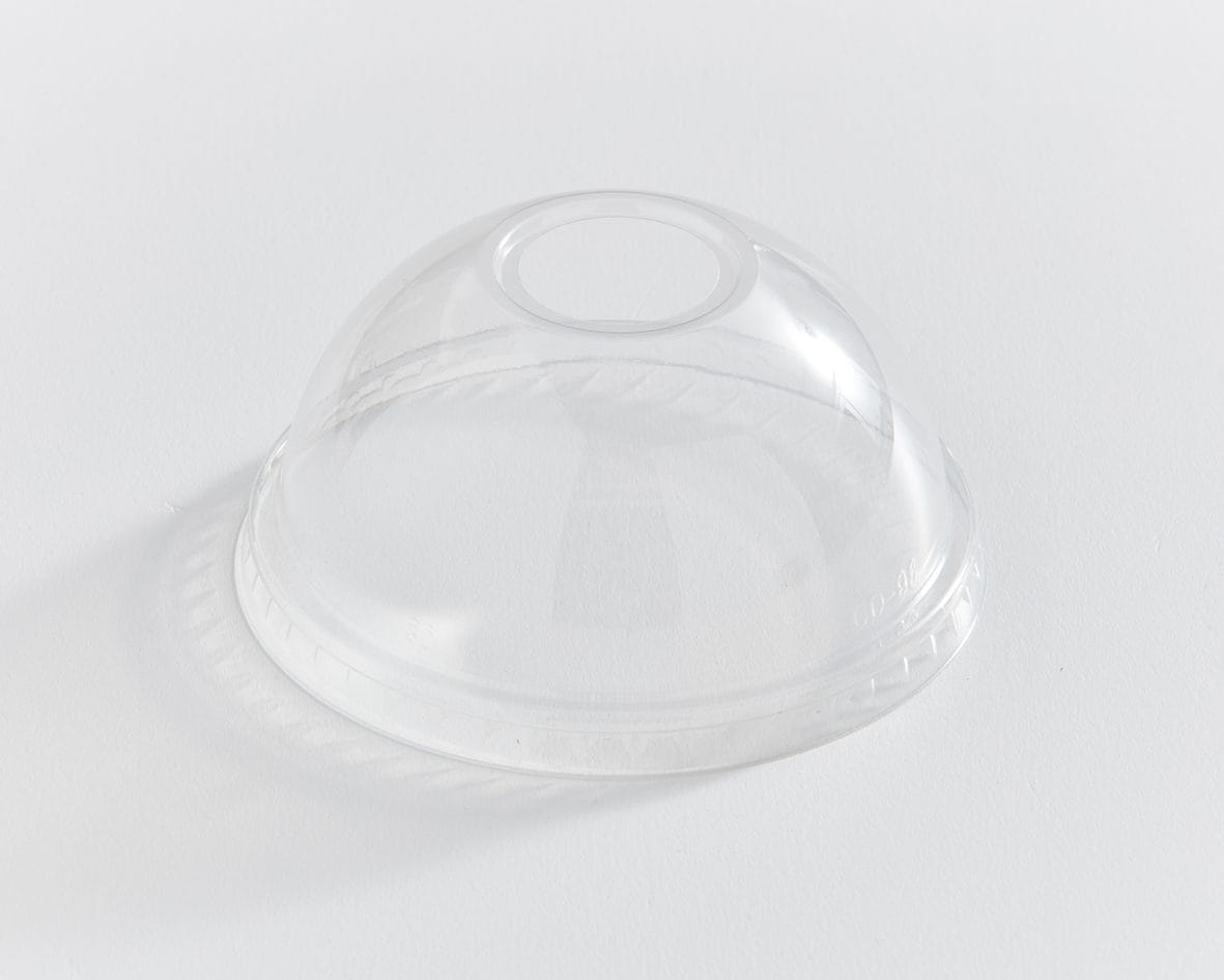 9 oz – 20 oz Clear PLA Dome Lid with Hole for Clear PLA Cold Cup. Premium strong and sturdy quality, superior feel, and tight fit to prevent leaks.