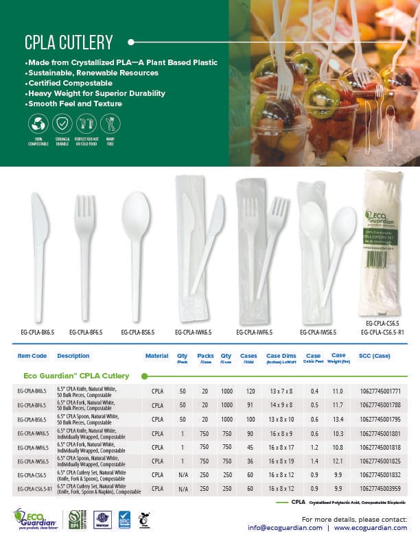 • Available in bulk pack (fork only), individually wrapped (in compostable packing), in cutlery set (1 each fork, knife, spoon) and in cutlery box (10 each fork, knife, spoon)