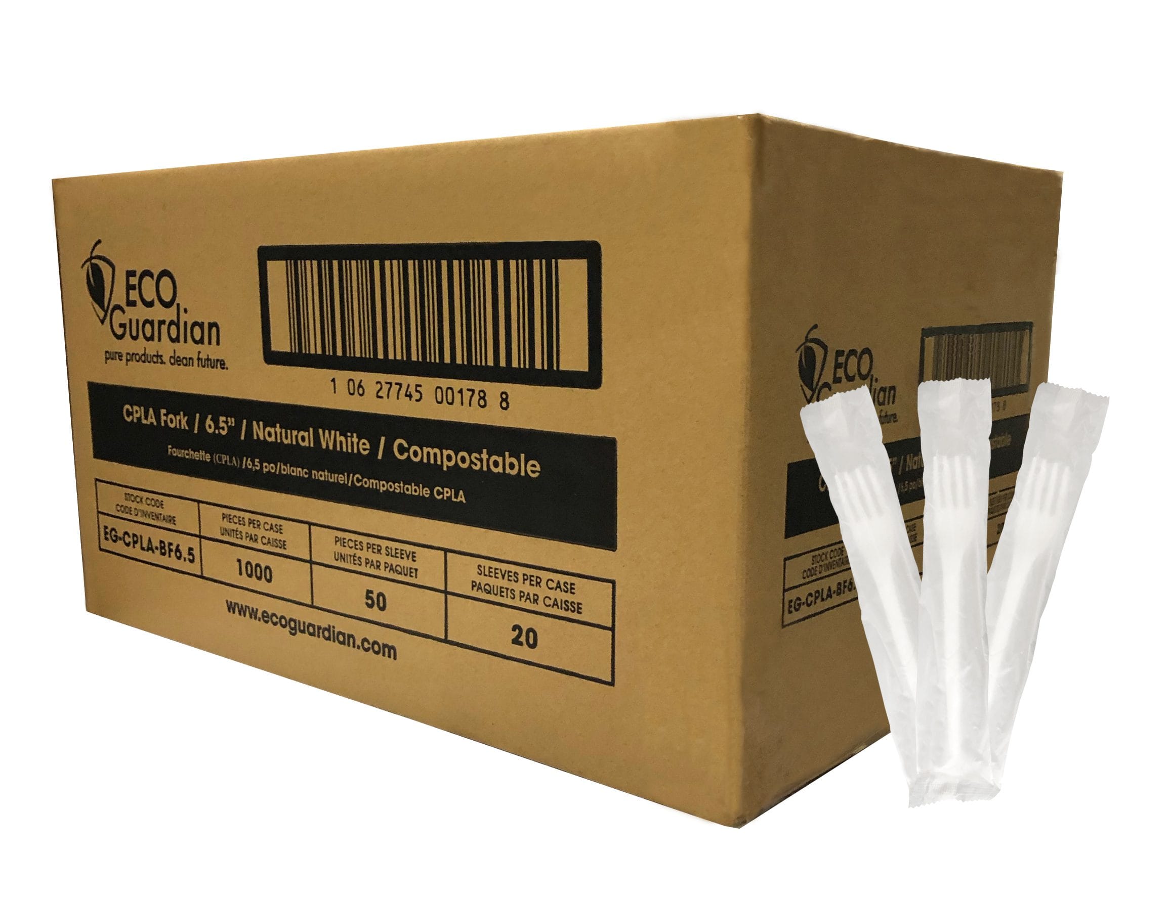 6.5″ Natural White Fork. Fully Compostable including the wrapping, both are made from CPLA.